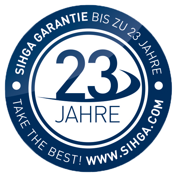 SIHGA® garantiert bei fachgerechter Verarbeitung und gewöhnlicher Verwendung gemäß SIHGA® Montageanleitungen und SIHGA® Konstruktionsempfehlungen über einen Zeitraum von 23 Jahren dem ursprünglichen Käufer, Erstkäufer, die Funktionalität der SIHGA® Befestigungsmittel laut nachstehenden Bedingungen.