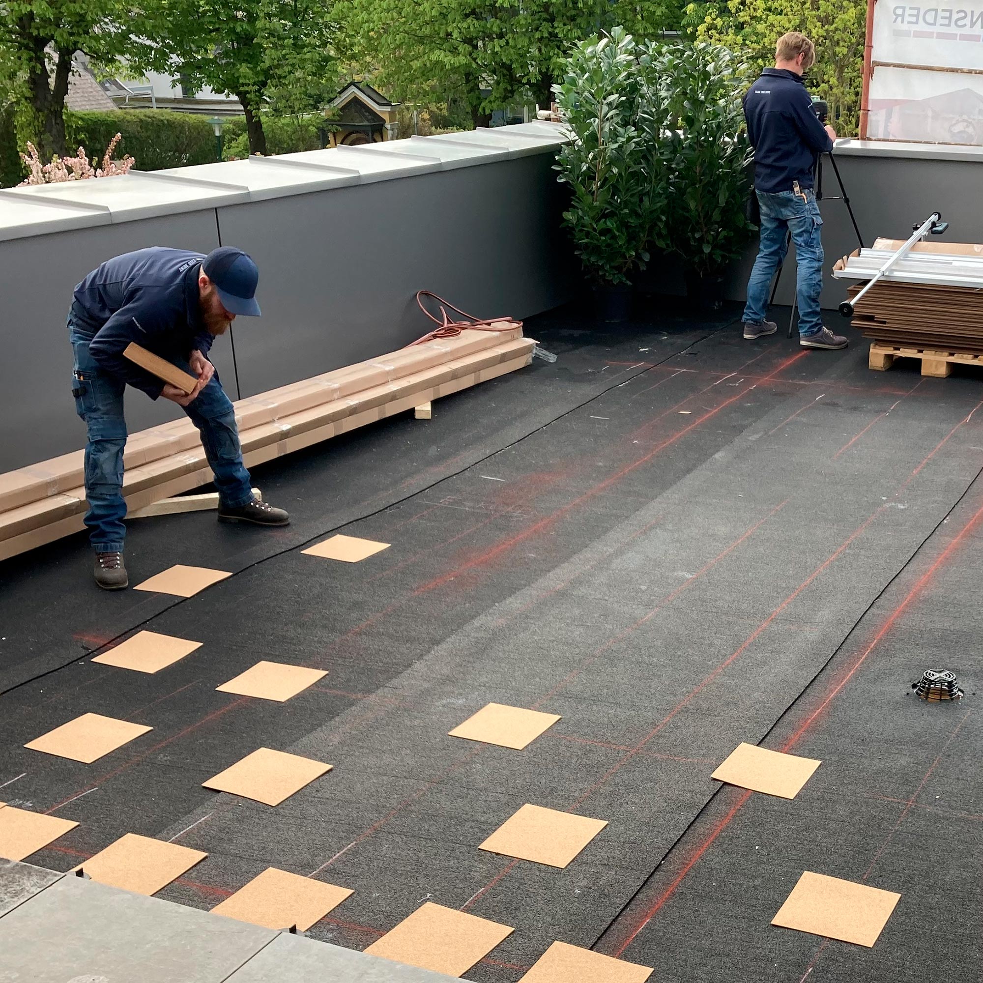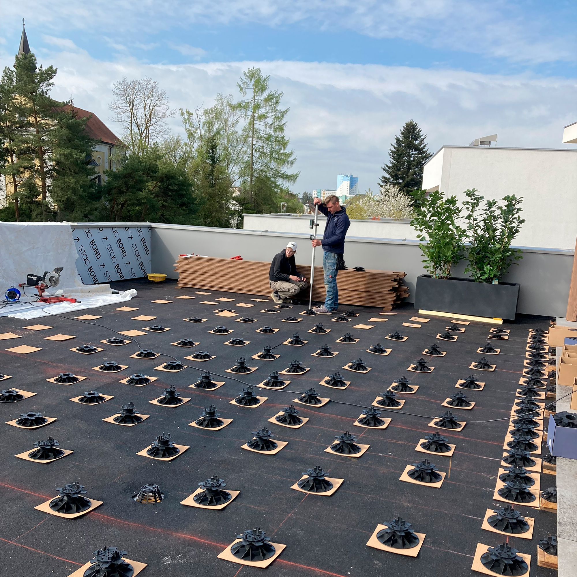 auf befestigtem und unbefestigtem Untergrund; 2 Stück pro m², bei 1100 mm Abstand der Terrassenfüße, reichen aus