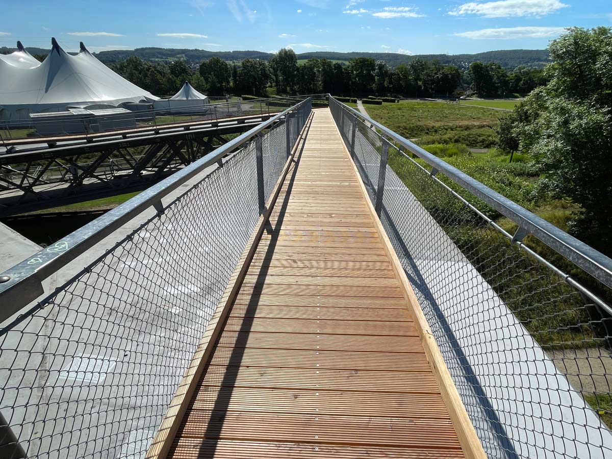 Auf Grund des Quell- und Schwindverhaltens von Holz dürfen nur Unterkonstruktionshölzer auf Stahl befestigt werden und erst auf diesen der Deckbelag.