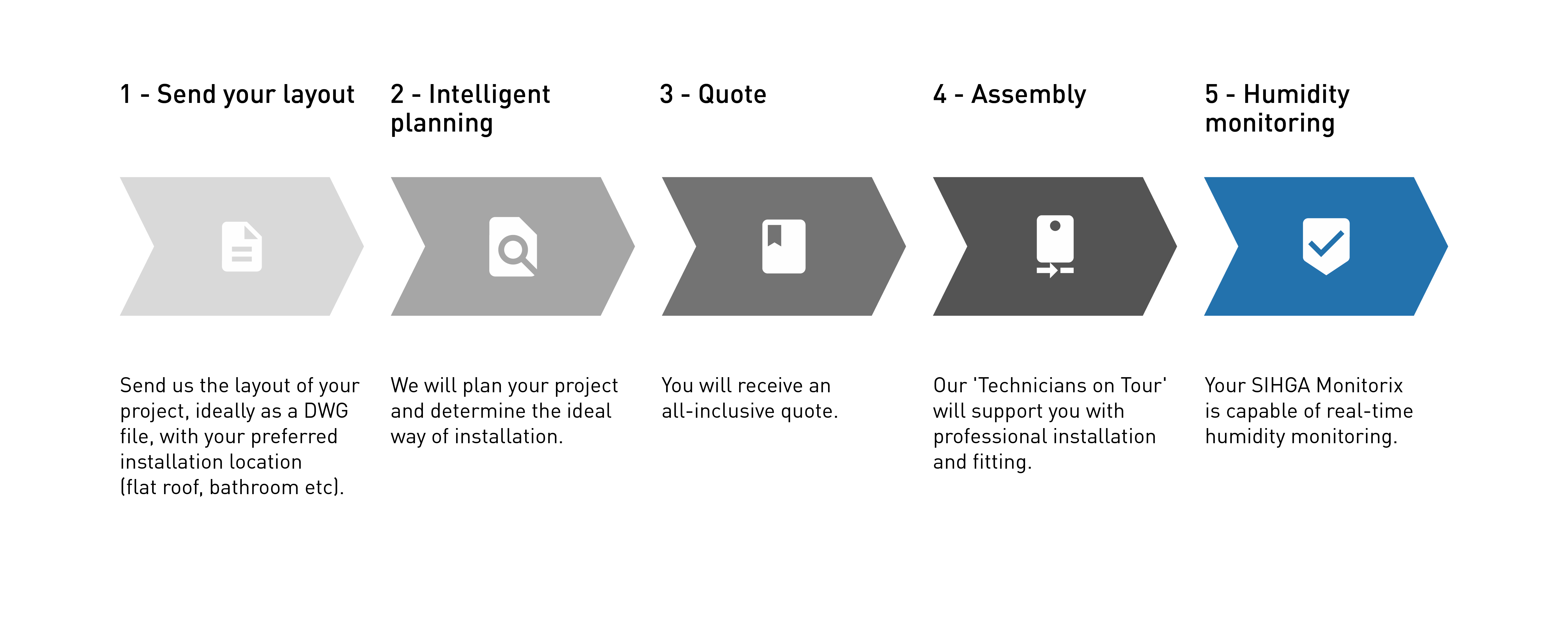 With the new Monitorix® moisture monitoring system, SIHGA® has set itself the task of preventing costly moisture damage in timber construction/massive construction. The innovative early detection system is used to monitor moisture and water ingress in timber components and can be integrated both in new buildings and later on in renovation work. The early warning system continuously monitors the moisture content in the roof, walls and floor and sounds the alarm immediately if anything abnormal is detected. This means that countermeasures can be initiated at an early stage and expensive damage caused by moisture ingress can be prevented.