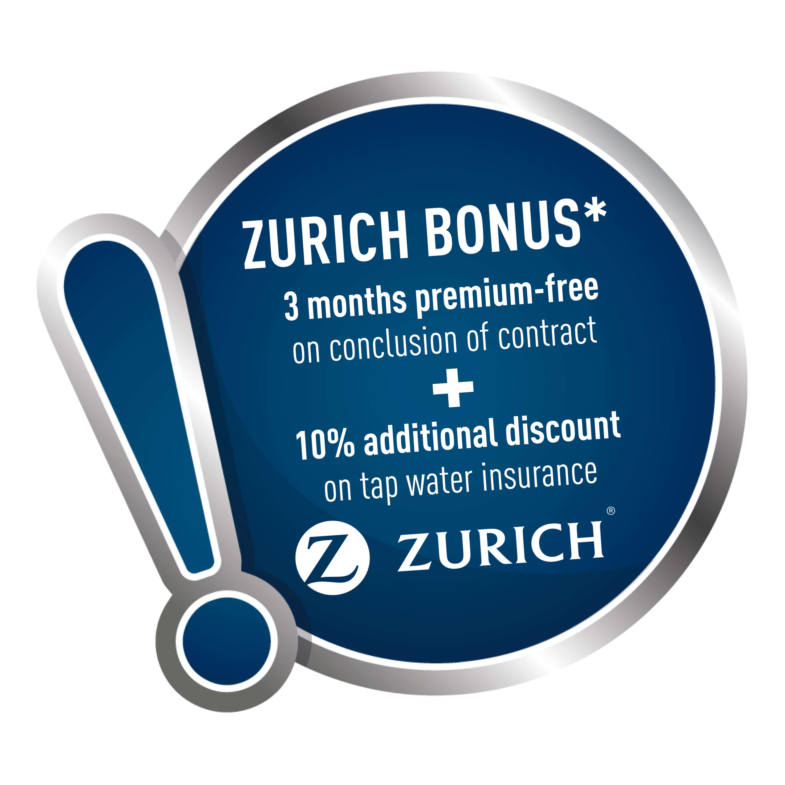 Lower building insurance premiums: 3 months premium-free on conclusion of contract + 10 per cent additional discount on tap water insurance with Zürich Versicherung