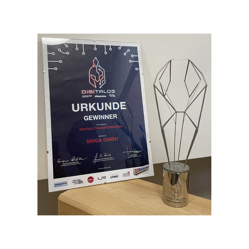 SIHGA® won the Digitalos Award in the category "Digital Transformation" in October 2022 for its Monitorix® system. In November 2022, SIHGA® also took first place in the Upper Austrian Crafts Award of the WKOÖ in the category "Innovation & Digitalisation" for its Monitorix® moisture monitoring system.