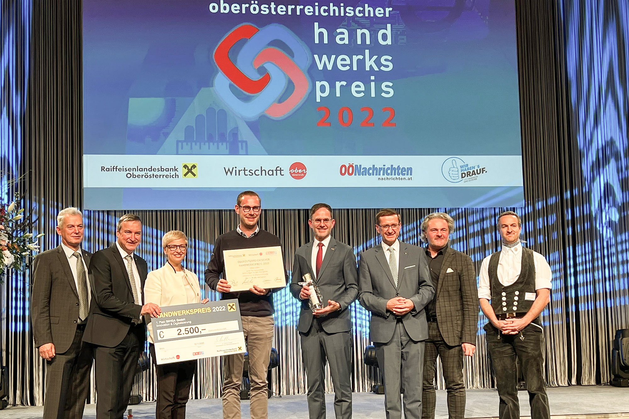 SIHGA drew first prize in the category “Innovation & Digitalization” for their project digital humidity monitoring on building sites. The winners were chosen out of more than 100 submissions and assessed by an expert panel. The craftmanship award, an initiative of the Upper Austrian bank “Raiffeisenlandesbank” and the Upper Austrian Federal Economic Chamber, has been supported by the Upper Austrian Economic Department. Since 1990 the department also hosts the price-giving ceremony.