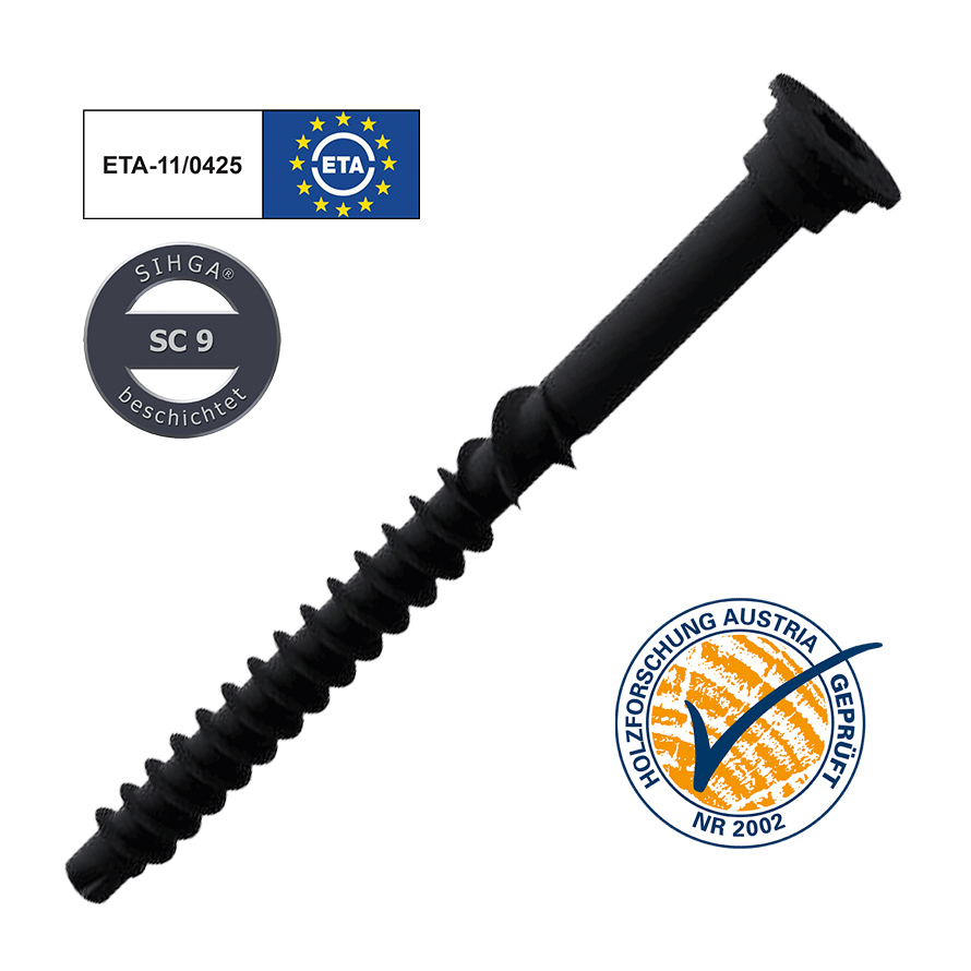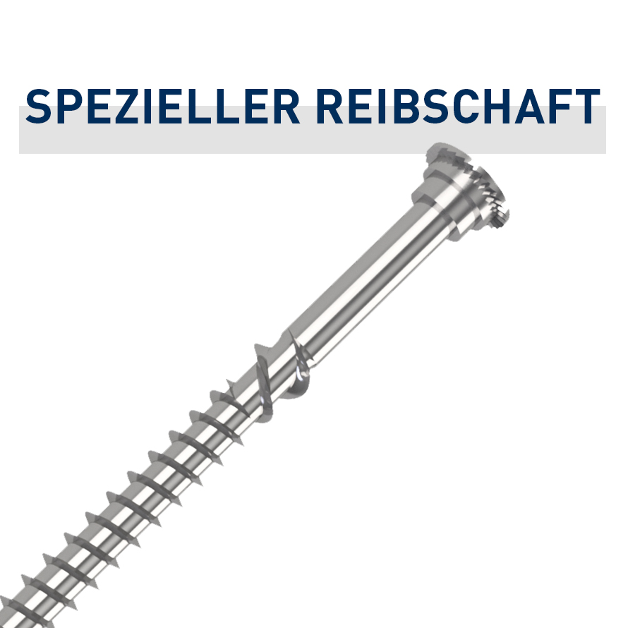 Durch die Kombination von Reibschaft und flachem Kopf wird das Bohren und Schrauben in einem einzigen Arbeitsgang ermöglicht. Der Reibschaft schafft bereits vorab eine passende Bohrung im Holz, während die Schraube gleichzeitig befestigt wird.