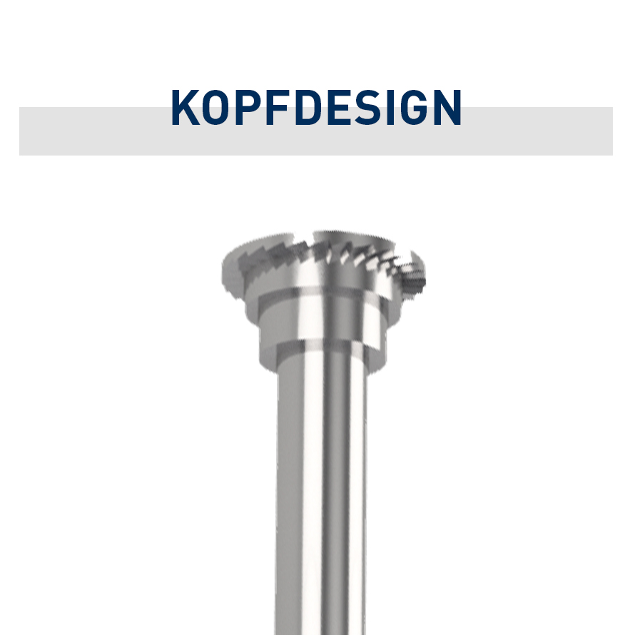 Die Schraube verfügt über einen flachen mehrstufigen Kopf, der so gestaltet ist, dass er bündig mit der Oberfläche des Holzes abschließt. Dieser flache Kopf welcher mit ganz kleinen Zähnen an der Unterseite ausgestattet ist, sorgt für eine ästhetisch ansprechende und nahtlose Verbindung, die das Erscheinungsbild der Terrasse oder Fassade positiv aufwertet. Der flache Kopf minimiert auch das Risiko von Splittungen oder Rissen im Holz.