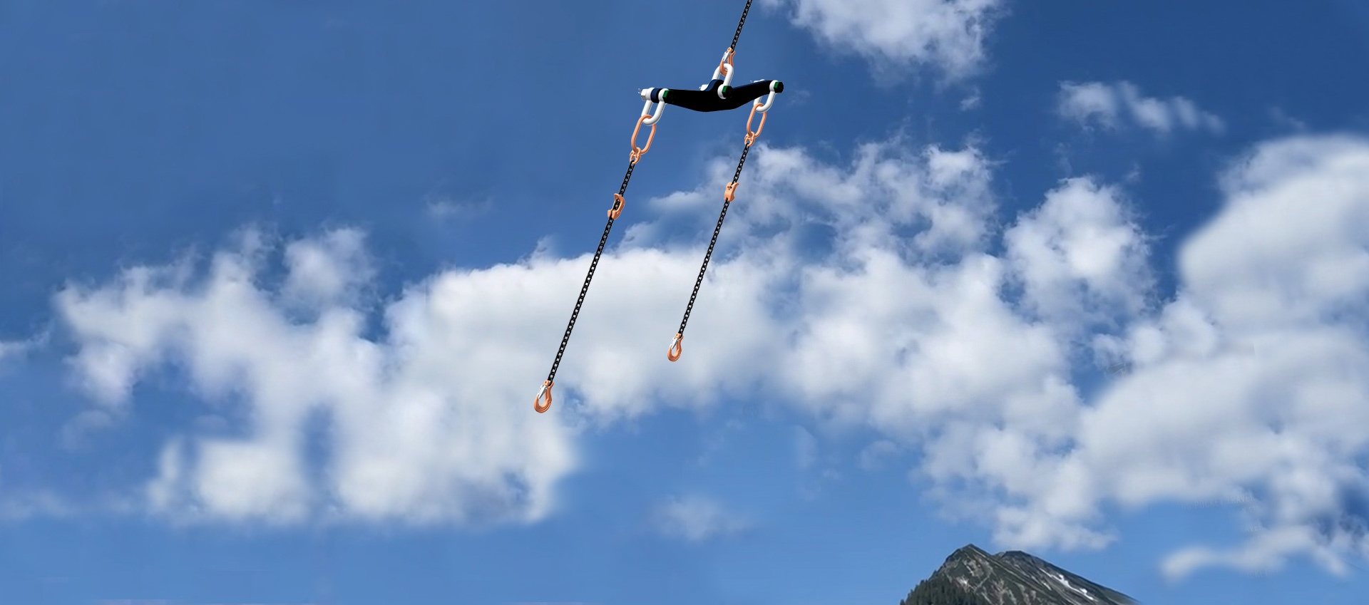 The Pocket Traverse is a practical tool in a smart format - easily transportable and available everywhere. The weight is 16.5 kilograms. The beam is 652 millimeters long, and the length of the two 1-strand chain slings is 1,000 millimeters. The special, patented geometry guarantees equal load distribution to each attachment point at lifting angles between 0 and 45 degrees. Shortening claws on the chains allow the system to be used correctly and safely even with demanding geometries.