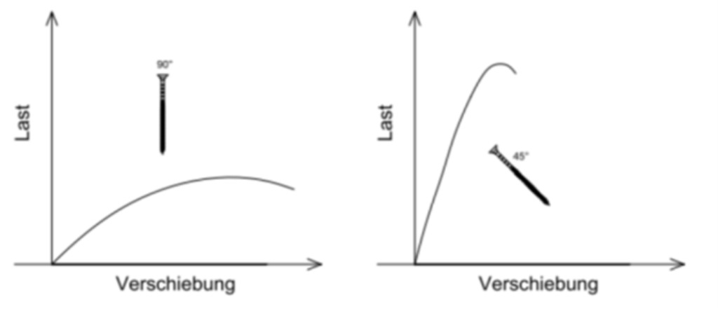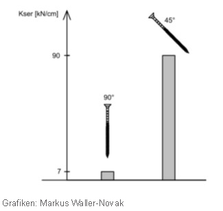 Steifigkeiten von Verbundschrauben in Abhängigkeit vom Schraubwinkel