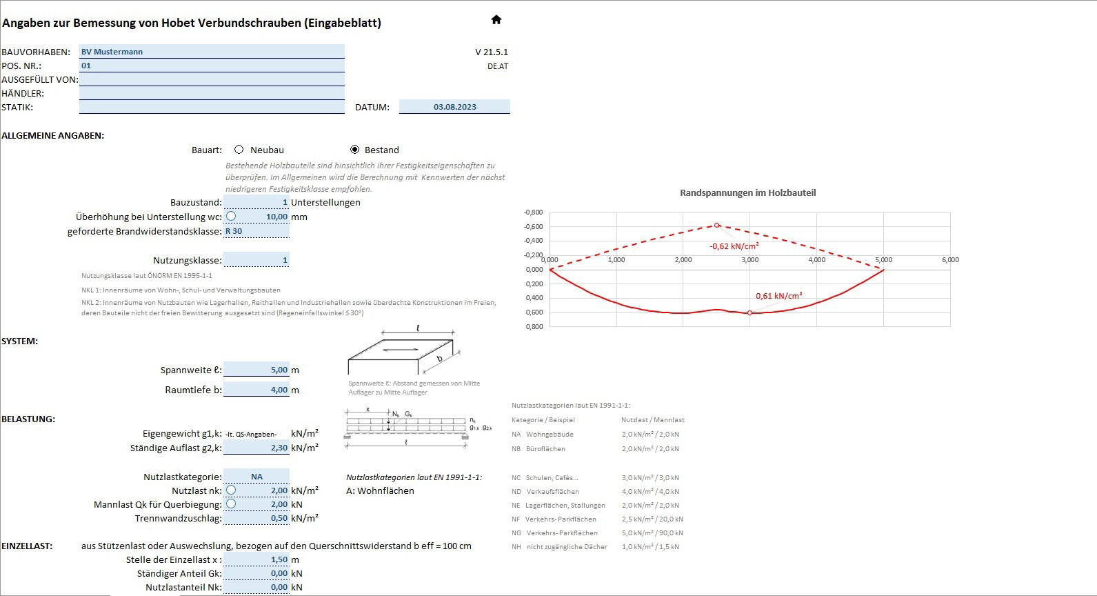 Screenshot vom Eingabeblatt des Bemessungsprogramms "Hobet"