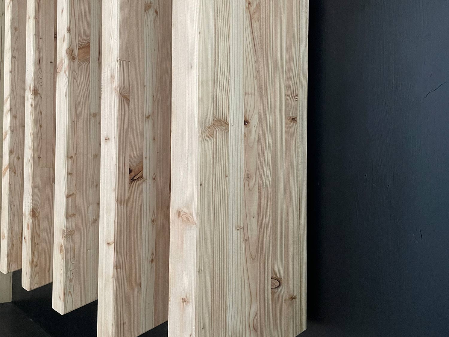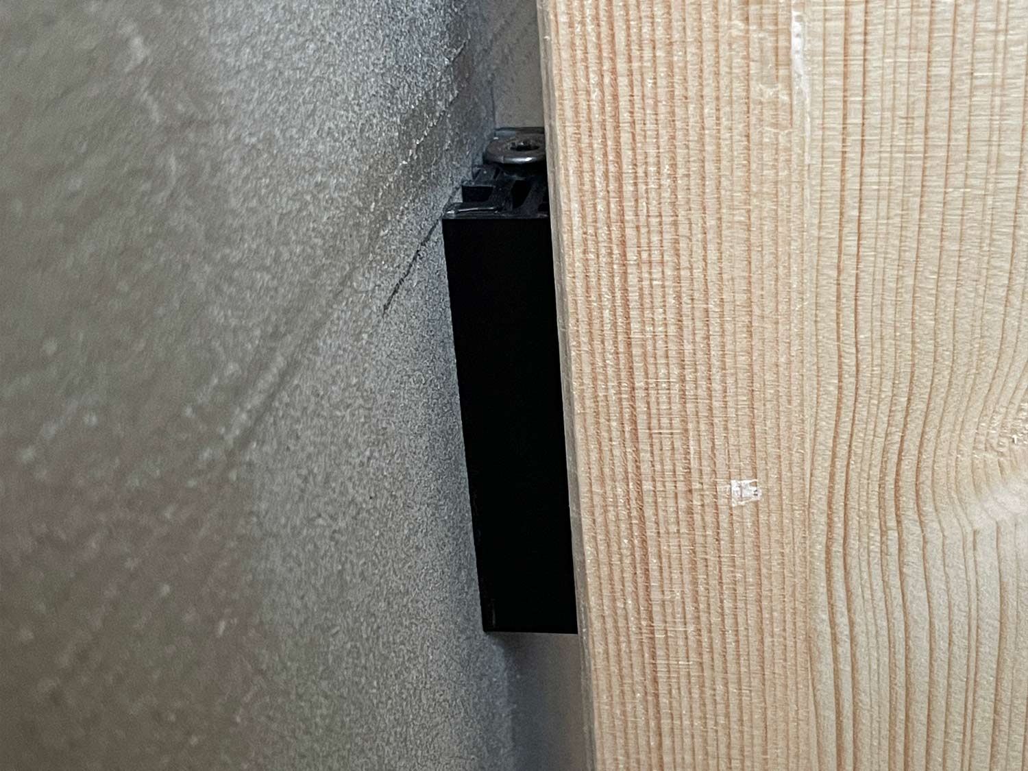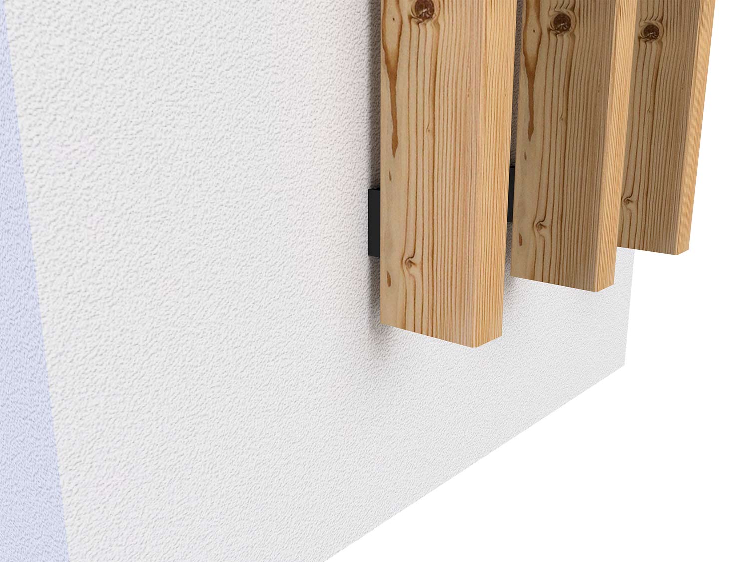 Der LamellenFix wird an der Rückseite der Fassadenlamelle montiert und ist daher von vorne nicht sichtbar. Die Holzlamelle ist 20 Millimeter von der Wand beziehungsweise der Unterkonstruktion distanziert und scheint zu schweben.