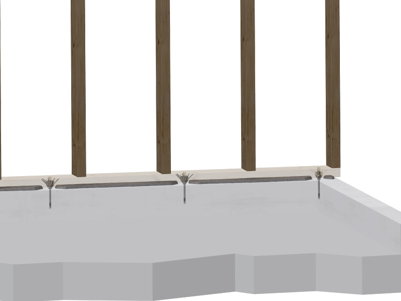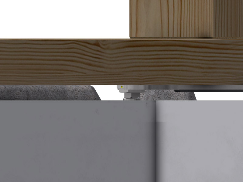 Wand-Boden-Verbindungen sind hohen statischen Anforderungen ausgesetzt und müssen Kräfte zuverlässig in den Untergrund ableiten. Modulix® erfüllt diese Anforderungen durch eine spielfreie, mechanisch gesicherte Verriegelung mit nur 90° Drehung. Die dreidimensionale Verschraubung nach dem bewährten IdeFix®-Prinzip ermöglicht die Übertragung von Zug- und Scherkräften und sorgt gleichzeitig für eine zusätzliche Querzugsverstärkung des Holzes. Auch auf schmalen Betonsockeln, bei denen klassische Winkelverbinder erschwert einsetzbar sind, gewährleistet Modulix® eine sichere und dauerhafte Verbindung.