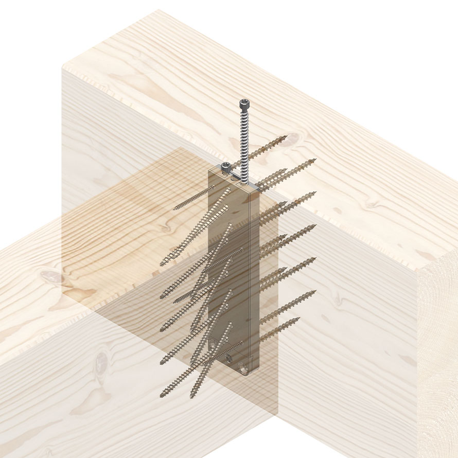 - universeller Schwerlastanschluss bis 94,72 kN pro Befestigungspunkt (bei Holz-Holz-Anschluss).