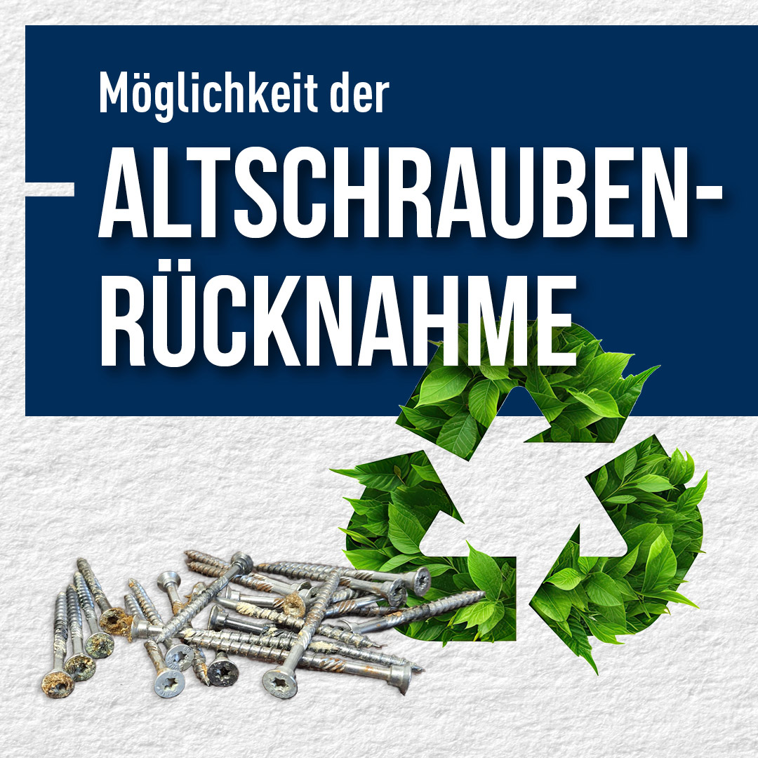 - Wir kümmern uns um den Rest: Wir übernehmen das Recycling und sorgen dafür, dass die Schrauben umweltgerecht entsorgt werden.
