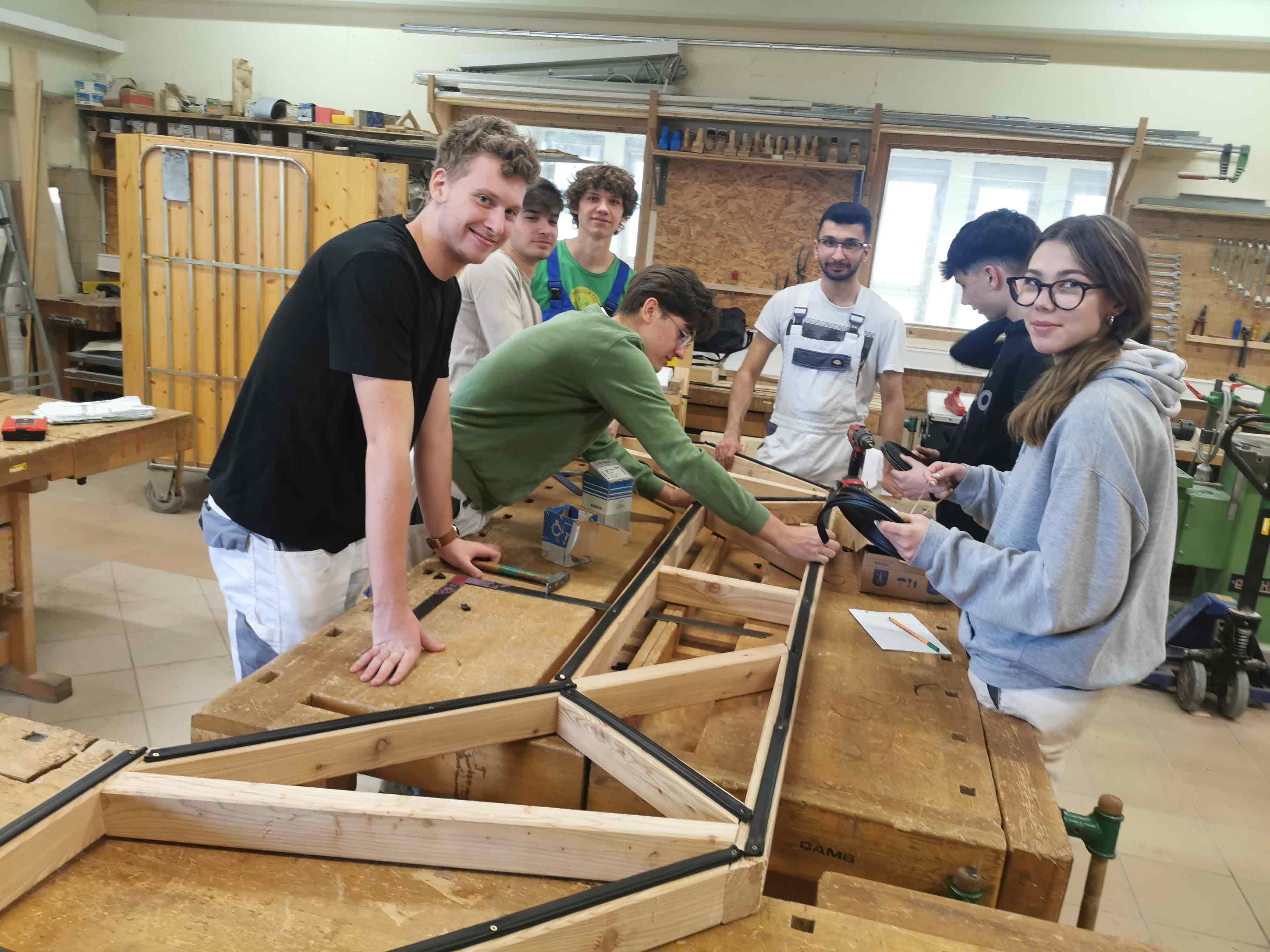 Die Schüler konnten damit die Holzverbindungen laut Lehrplan an einem sinnvollen, schönen Möbel erlernen, das nun der ganzen Schule zur Benutzung zur Verfügung steht.
