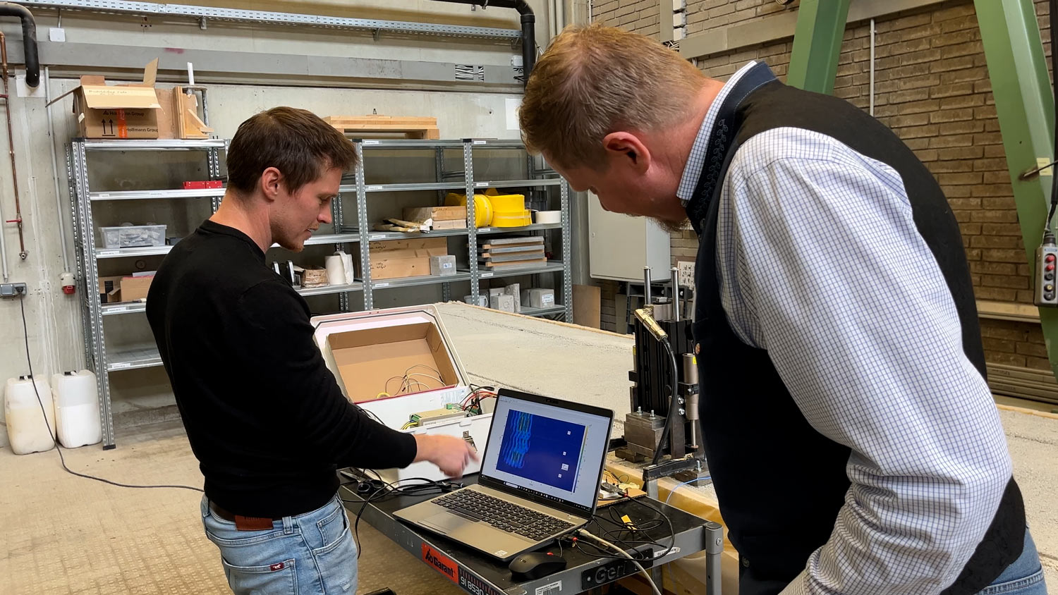 Wie man sich vorstellen kann, stellte die größte Herausforderung das aktive Element dar – die sogenannte Hardware sowie das Zusammenspiel zwischen Messtechnik und der Regelung des Linearmotors. Es muss immer berücksichtigt werden, dass für einen gelernten Bauingenieur die Umsetzung und Entwicklung eines elektromagnetischen Schwingungsdämpfers samt der notwendigen Regelung eine etwas größere Herausforderung darstellt als die Mechanik und der Holzbau an sich. Nichtsdestotrotz ist das dynamische Verhalten von Deckensystemen und die personeninduzierte Erregung in den theoretischen Grundlagen sowie in der Umsetzung der aktiven Schwingungsreduzierung ebenfalls keine leichte Kost. Was ich damit sagen möchte, ist, dass genügend weitere Herausforderungen vorhanden waren, die jedoch mit ausreichend Motivation bewältigbar sind.
