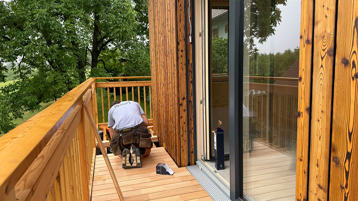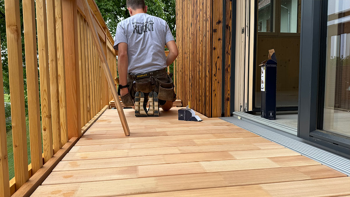 Gerade im Terrassenbau vertraut Reinholz auf die innovativen Befestigungssysteme von SIHGA. „Wir setzen auf hochwertige Befestigungsmittel und da passt SIHGA perfekt“, bestätigt uns Michael Gugganig vom Holzbau- und Abbundzentrum Hansmann GmbH beim Besuch auf der Baustelle.