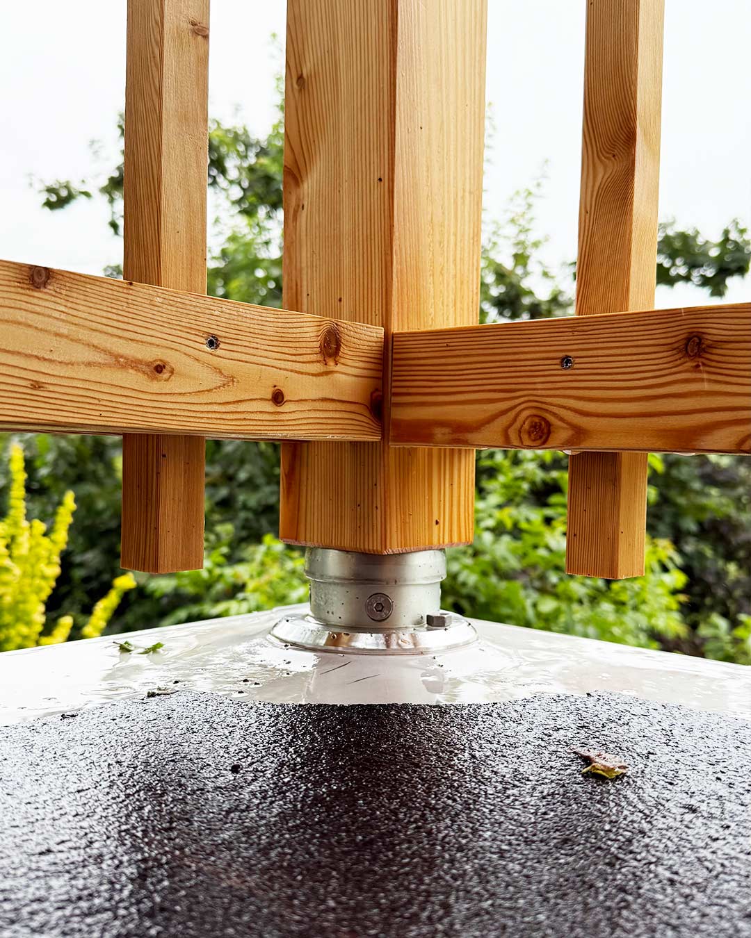 Eine besondere Herausforderung lag bei diesem Projekt in der sicheren Geländerbefestigung der Terrasse. Hier kam der Pfalu Aquastop von SIHGA zum Einsatz – eine Lösung, die nicht nur für Stabilität sorgt, sondern auch optimal vor Feuchtigkeit schützt.
