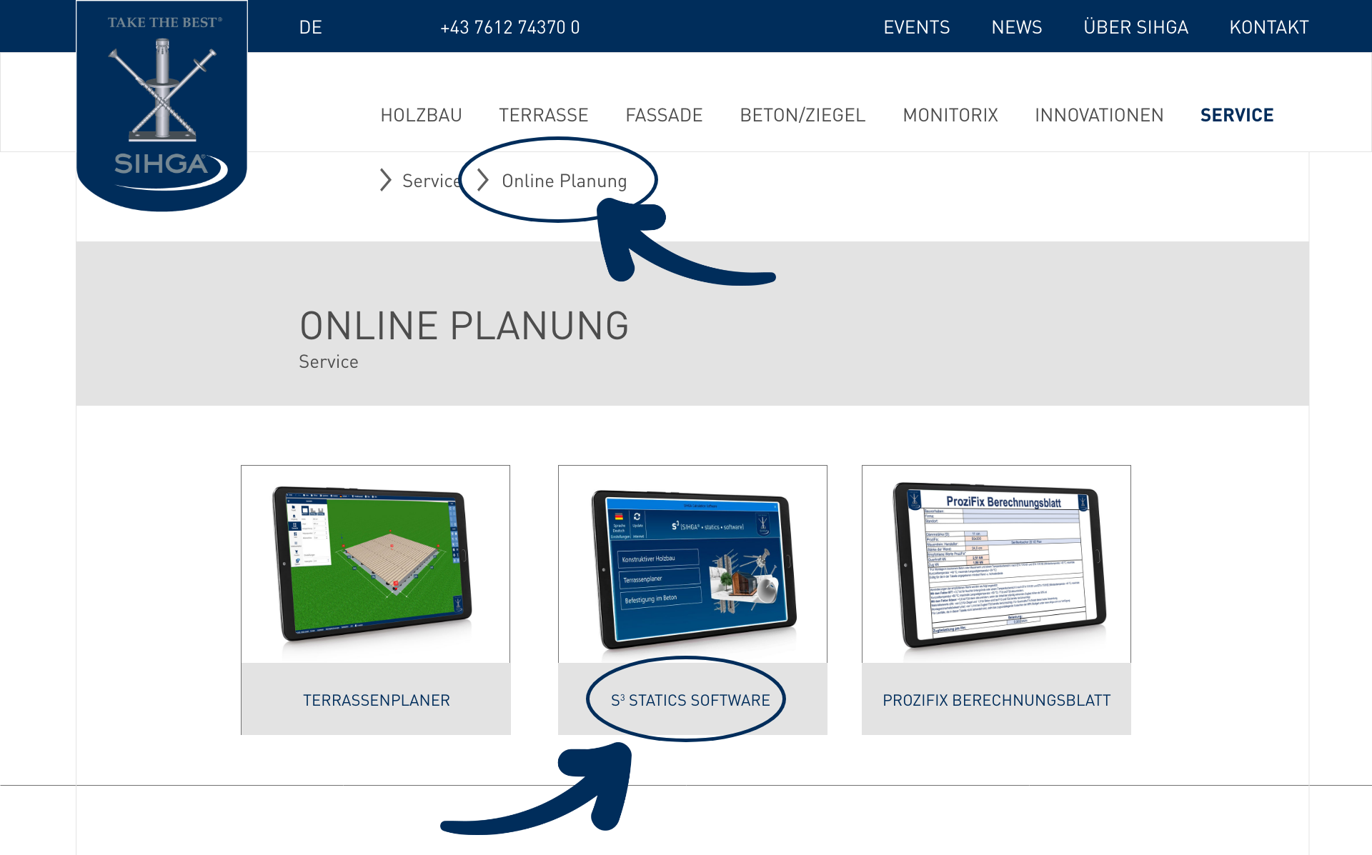 Die S³ Bemessungssoftware steht unter https://www.sihga.com/service/online-planung/ kostenlos zum Download zur Verfügung.