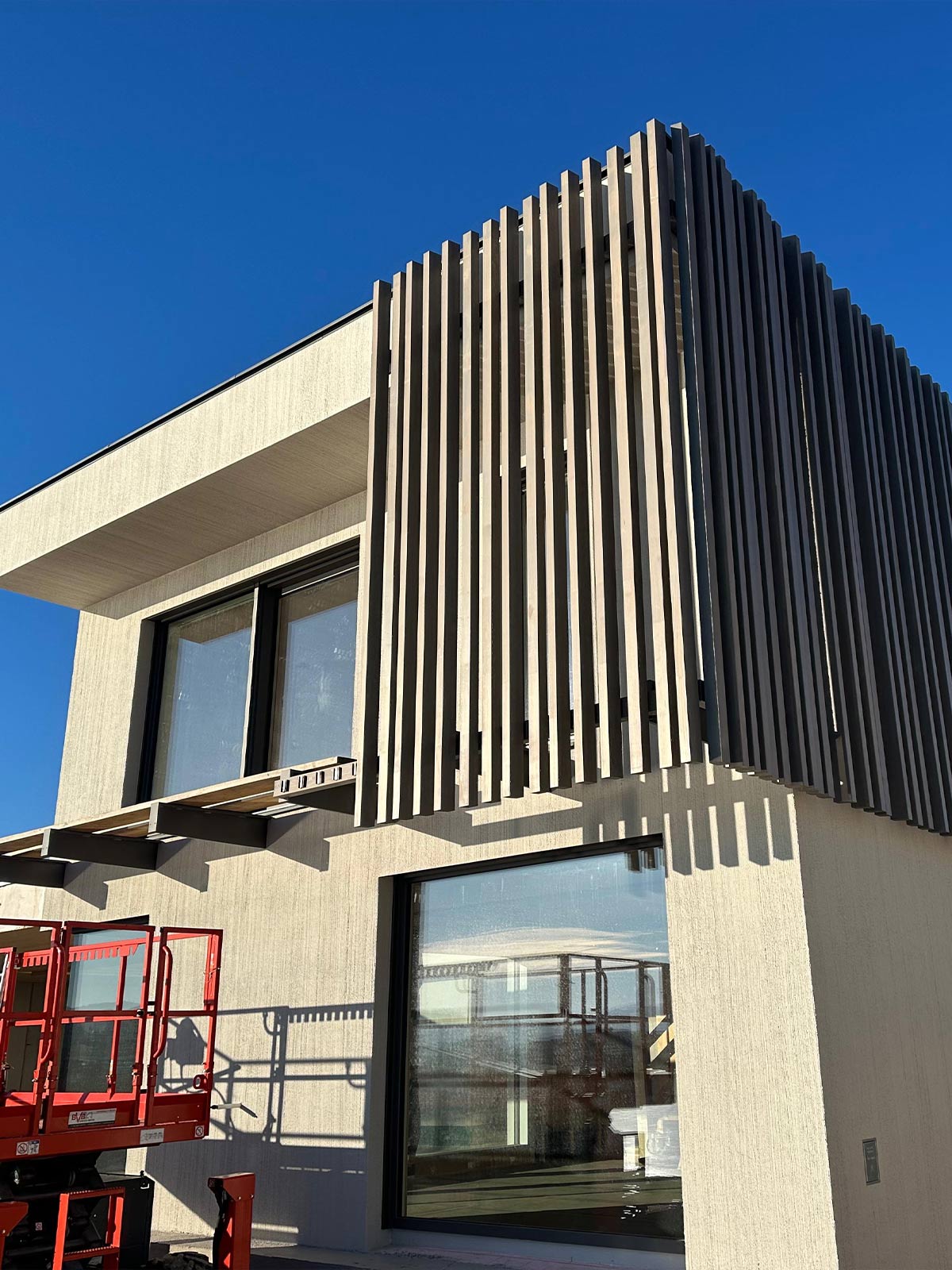 In der Architektur werden Verbindungssysteme bevorzugt, die optisch nicht in Erscheinung treten. LamellenFix wird an der Rückseite der Fassadenlamelle montiert und ist daher von vorne nicht sichtbar. Die Holzlamelle ist 20 Millimeter von der Wand beziehungsweise der Unterkonstruktion distanziert und scheint zu schweben.
