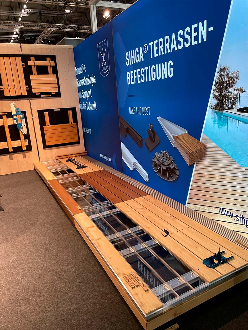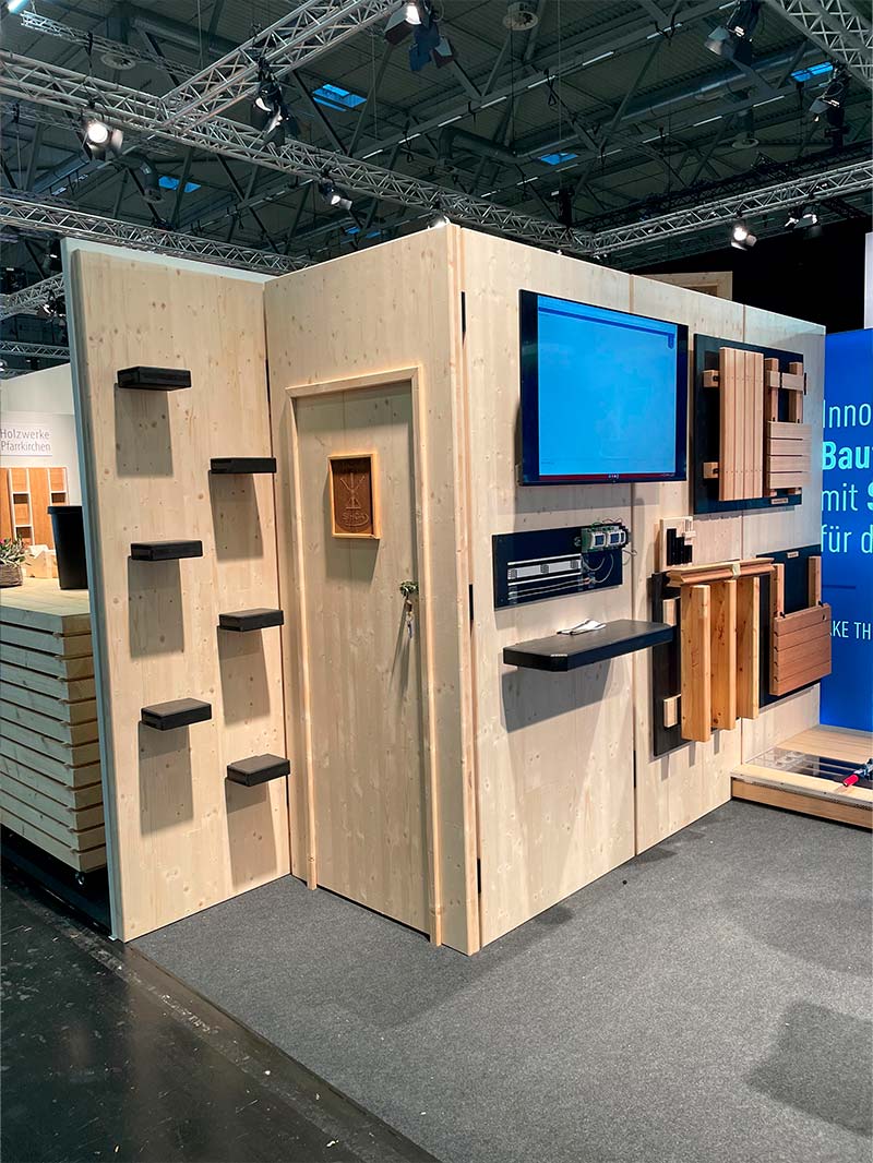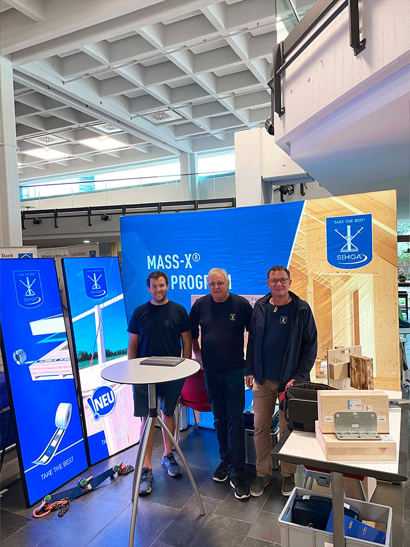Entdecken Sie die Zukunft des Holzbaues mit SIHGA. Wir lösen Ihre Herausforderungen. Unser selbst gefertigter und modular aufgebauter Messestand wird jeder Fachmesse gerecht und ist der perfekte Hintergrund für Live-Demonstrationen unserer innovativen Entwicklungen. Die Planung und Umsetzung des Messestandes aus CLT-Platten erfolgte direkt bei SIHGA. Erleben Sie die SIHGA Anwendungsspezialisten im persönlichen Beratungsgespräch.